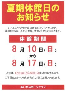 夏期休館日について