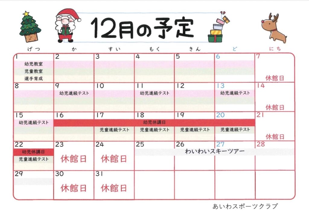 あいわスポーツクラブ 2月の予定表|休講日・進級テスト・イベントのお知らせ