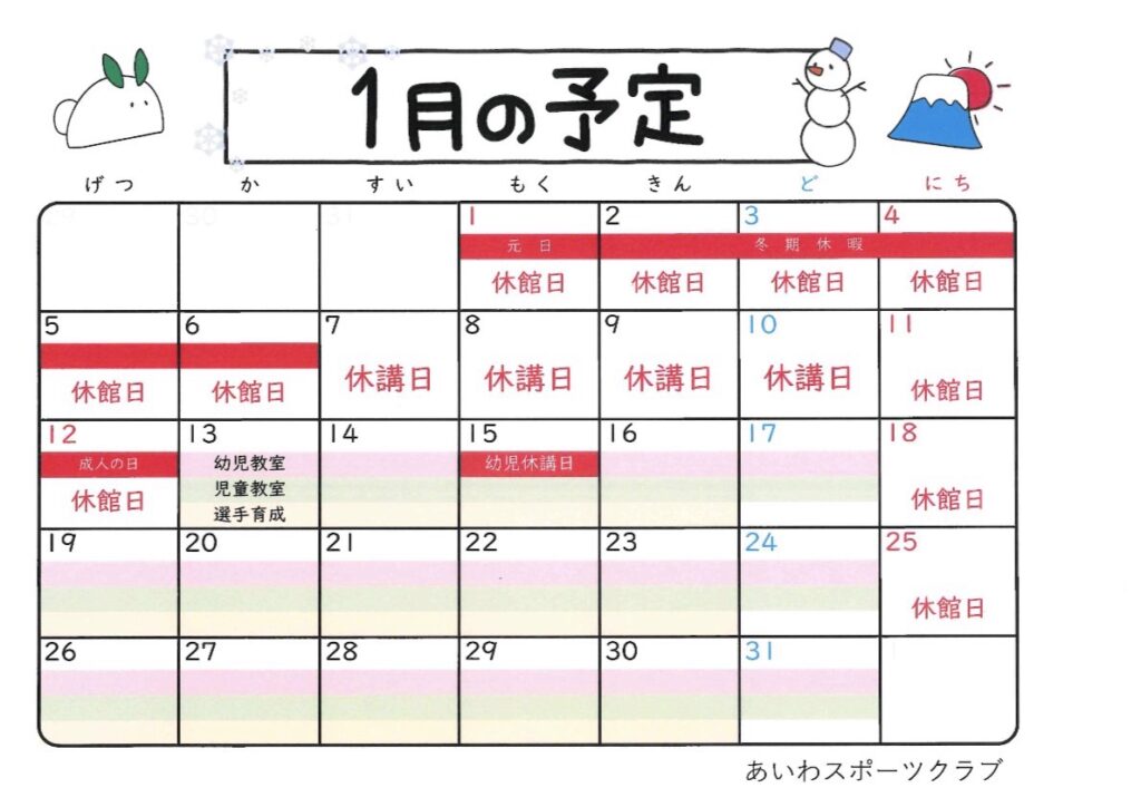 あいわスポーツクラブ 2月の予定表|休講日・進級テスト・イベントのお知らせ